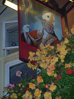 We capped off a week of walks and lectures by going to hear Klauser speak to a class at the British Film Institute on surrealism in film. He too was articulate and delightful, managing to link films as diverse as Le Chien Andaluse, Bimbo's Initiation (featuring an early Betty Boop, who at that point had dog ears!), and Being John Malkovich. The class was engaged and asked excellent questions; it was both informative and highly entertaining.Our pub for the week (a short week, as we leave tomorrow for parts warmish and sunny):